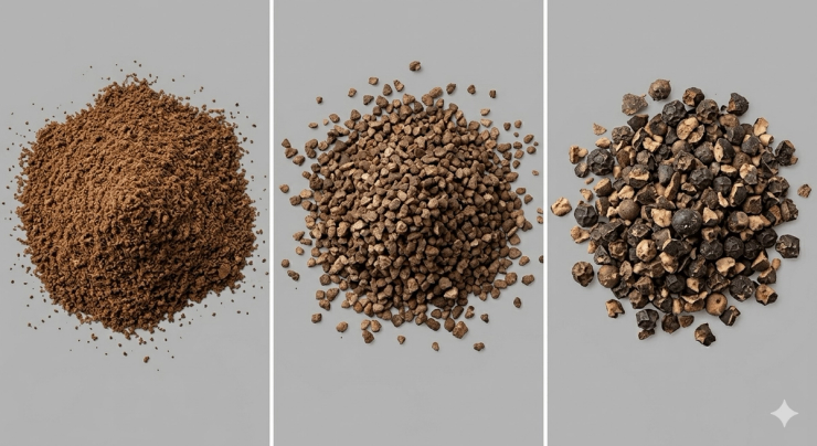 You want a coarse grind. Think rough sea salt or cracked black pepper — not powder, not sand.